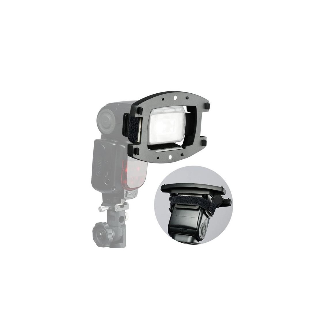 Ajuta la atasarea accesoriilor pentru controlul luminii de blitz: honeycomb, snoot, voleuri, filtre gel.