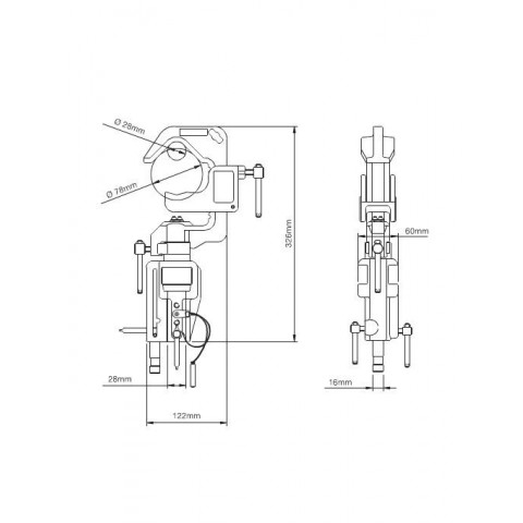 Dispozitiv de prindere pentru diametre cuprinse intre 28 mm la 78 mm. Atasament 1/8 (28 mm) Atasament 5/8 (16 mm)