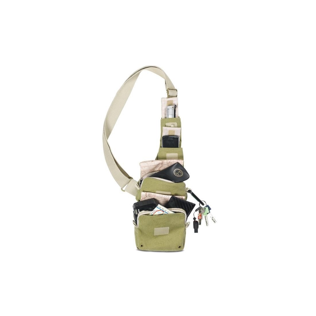 Sling-ul Earth Explorer NG 4568 este creat pentru a transporta zilnic accesoriile personale cu un aparat foto mirrorless sau compact, telefonul mobil, MP3 player si documente de calatorie.