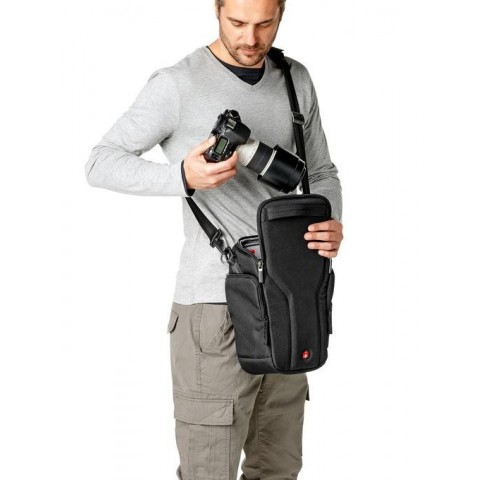 Geanta Manfrotto Professional Holster Plus 40 Este solutia perfecta pentru a transporta un body din gama Pro, cu un teleobiectiv atasat (70-200mm f/2.8) si accesorii. Geanta este insotita si de o husa de ploaie.