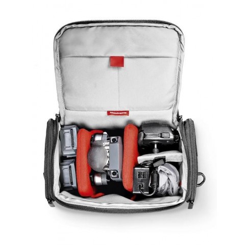 Geanta Manfrotto Advanced Shoulder Bag A6 este ideala pentru un aparat foto tip mirrorless sau DSLR cu obiectiv atasat + alte obiective si accesorii cum ar fi acumulatori sau carduri de memorie.