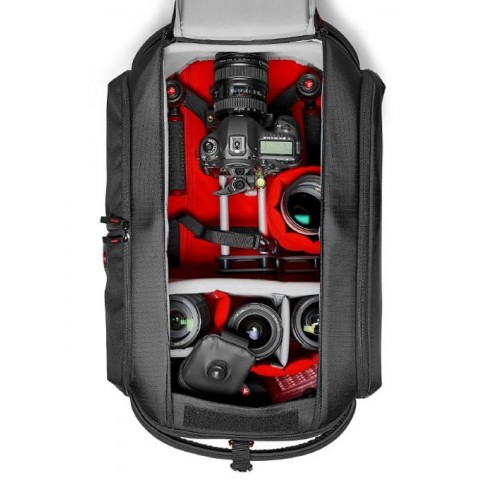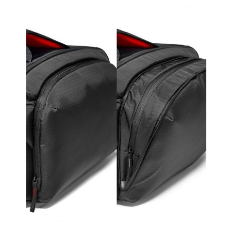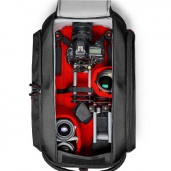 Compartimentul principal, gazduieste cu succes camera video cu accesoriile esentiale montate, in timp ce restul accesoriilor pot fi depozitate in interior sau in buzunarul extern.