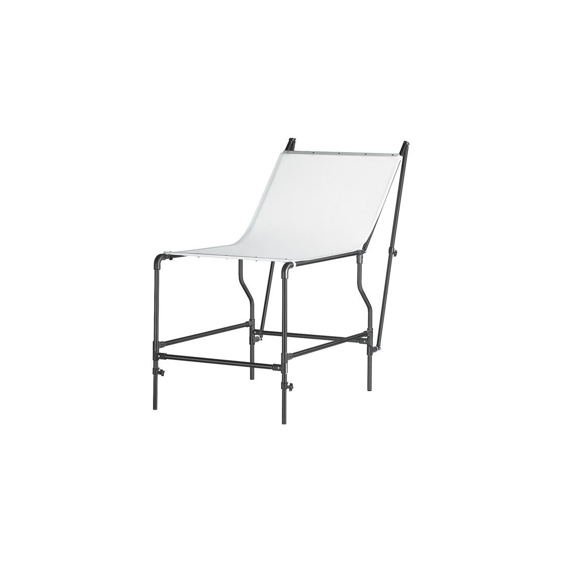 Masa din schelet construit din aluminiu rezistent, ideala pentru fotografierea produselor.Scheletul poate fi ajustabil (picioarele din fata si unghiul spatelui panoului sunt ajustabile).