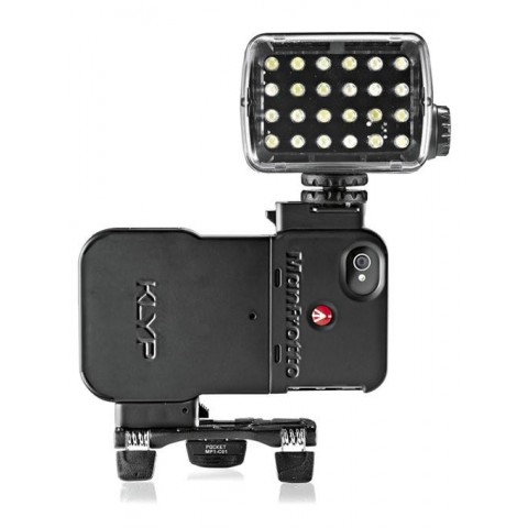 Cand adaptoarele nu sunt atasate, carcasa KLYP ramane neteda, fara denivelari, datorita sistemului de prndere culisabil oferit de Manfrotto. Acelasi sistem permite ca accesoriile sa fie atasate in oricare din cele patru puncte de prindere ale carcasei, pentru a putea alege modul cel mai potrivit de fotografiere, portret sau landscape. O lumina poate fi indreptata fie spre fata sau spatele telefonului, pentru a ilumina ambele camere ale iPhone-ului.