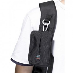 Curele speciale de prindere de la spatele pouch-ului permit prinderea atat verticala cat si orizontala de curea sau de centura unui rucsac, iar pentru o prindere rapida este livrat cu o carabina.