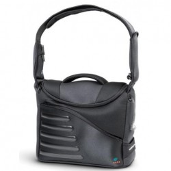Geanta este livrata impreuna cu o curea de umar ergonomica, o husa de ploaie si un sistem de prindere cu velcro pentru curea.