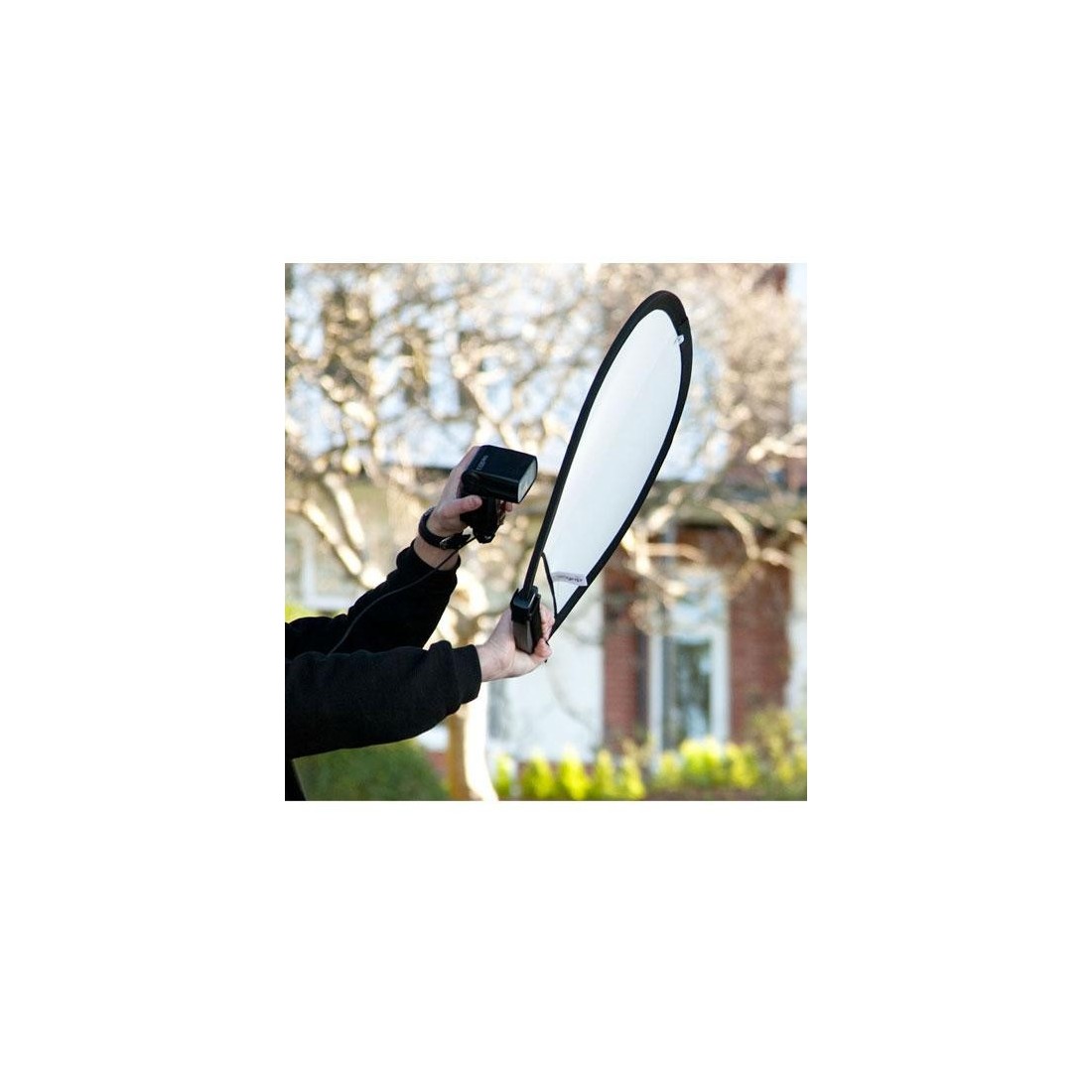 Datorita formei triunghiulare, ofera mai multa fermtate materalului, iar suportul de prindere cu care este dotat ajuta foarte mult fotograful in timpul sedintei foto, pentru a controla pe deplin pozitionarea panoului fata de subiect.