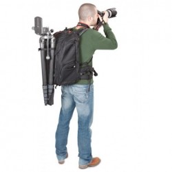 Trepiedul poate fi atasat si purtat in siguranta in exteriorul rucsacului cu ajutorul suportului special care este livrat cu rucsacul.