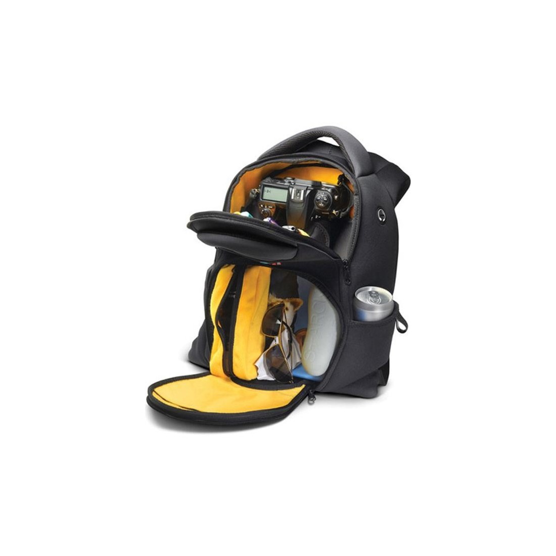 Kata KT A43U rucsac foto ideal pentru un DSLR + 1-2 obiective si un laptop/iPad de 12 inch plus alte accesorii foto si lucruri personale.  Interiorul este impartit in doua, compartimentul superior fiind destinat echipamentului foto. Atunci cand nu este nevoie, peretele din Elasto-Guard se pliaza pentru a crea un spatiu mai mare.