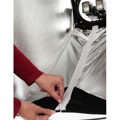Este un model unic de softbox care isi schimba forma din patrat in dreptunghi.