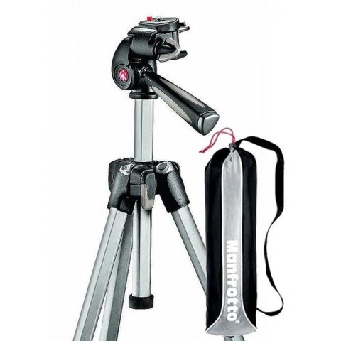 Manfrotto Kit complet trepied foto 393H, cu cap 3-way si husa de transport, incluse.